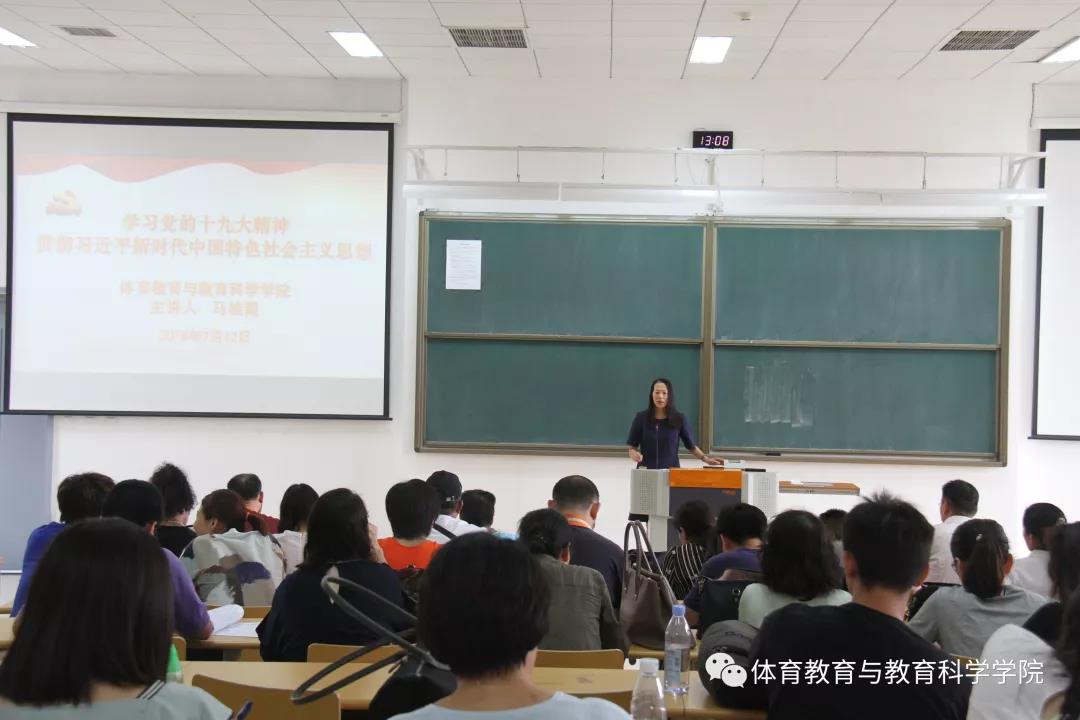 在教学楼A201举行“学习党的十九大精神,贯彻习近平新时代中国特色社会主义思想”专题第一次党课宣讲。党委书记马桂霞主讲,比分网