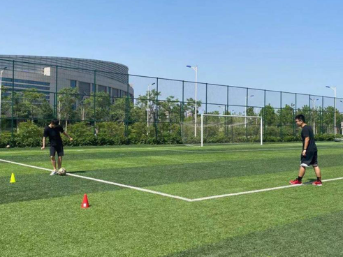 6月1日在足球场举办以“激情绿茵,足下启航”为主题的活动,参与本次活动的有2019级和2020级研究生。炎炎夏日,同学们激情未减,活动开始在孙旭双同学的带领下进行花样接力传球热身游戏,刘轲同学和张光胜同学讲解并展示了足球脚内侧踢球和接球的动作要领,同学们在讲解中充分感受到足球运动的魅力。随后同学们展开认真练习,亲身感受足球运动所带来的活力。