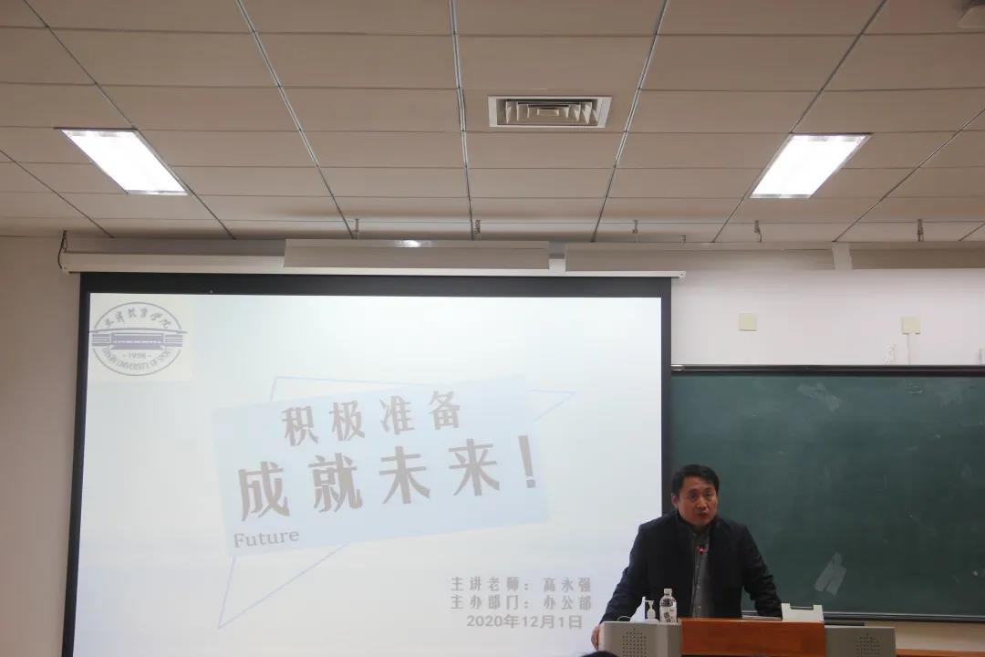 院长高永强主讲,参与本次活动的有2019级和2020级研究生。高老师结合思想政治教育,提出新时代研究生该如何看待“优就业”问题,引发在座学生的深入思考。在当今社会教育背景下,作为新时代研究生,如何为就业做好准备,是每一名研究生面临的一道难题。在课堂中,高老师向研究生同学们明确分析了目前我国体育生的就业形势与发展前景,使大家对未来的职业道路有了更清晰的认识。