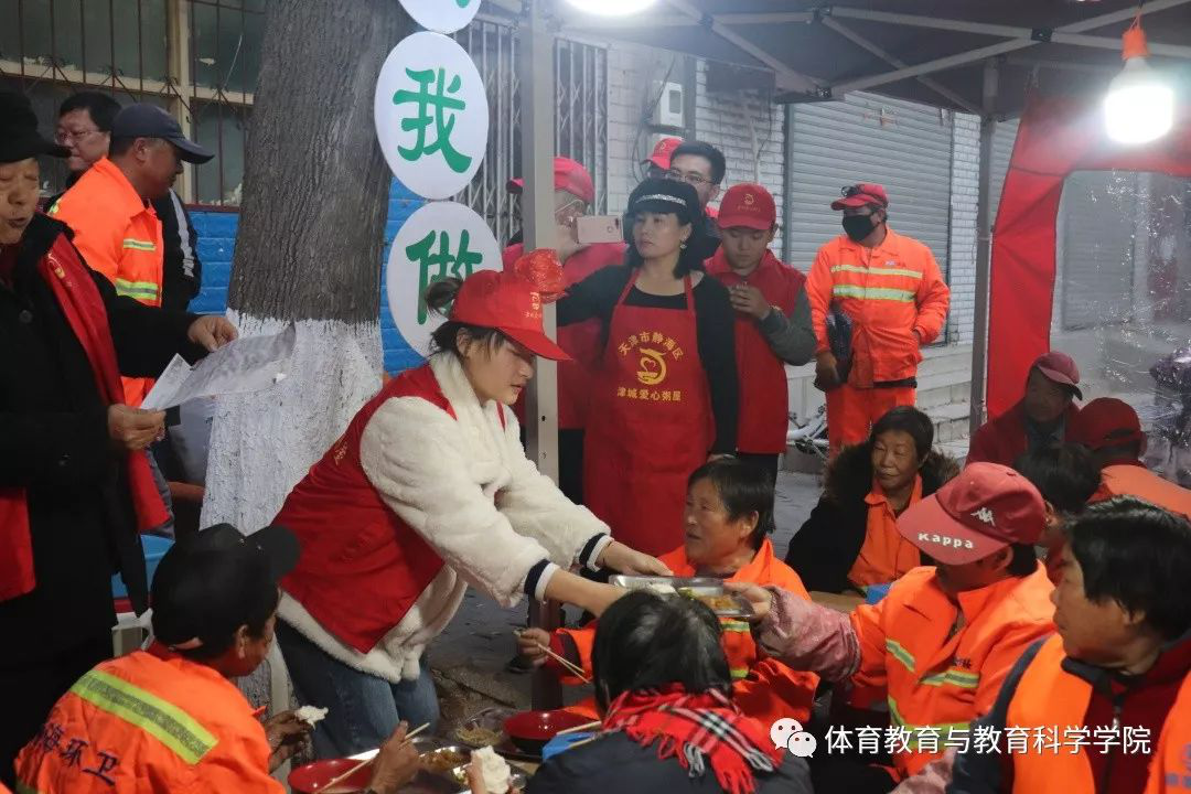 “爱心粥屋”位于静海区主城工农路,每周六向社区内环卫工人、孤寡老人、家庭经济困难群体免费开放,提供爱心早餐。早晨六时四十分左右,师生一行人到达爱心粥屋,迅速与粥屋工作人员和其他志愿者会合,立即投入到志愿服务工作当中,承担餐食发放、餐具整理清洗等任务。志愿者还为领取免费早餐的群众发放了过冬毛衣。活动于早八时左右顺利结束。