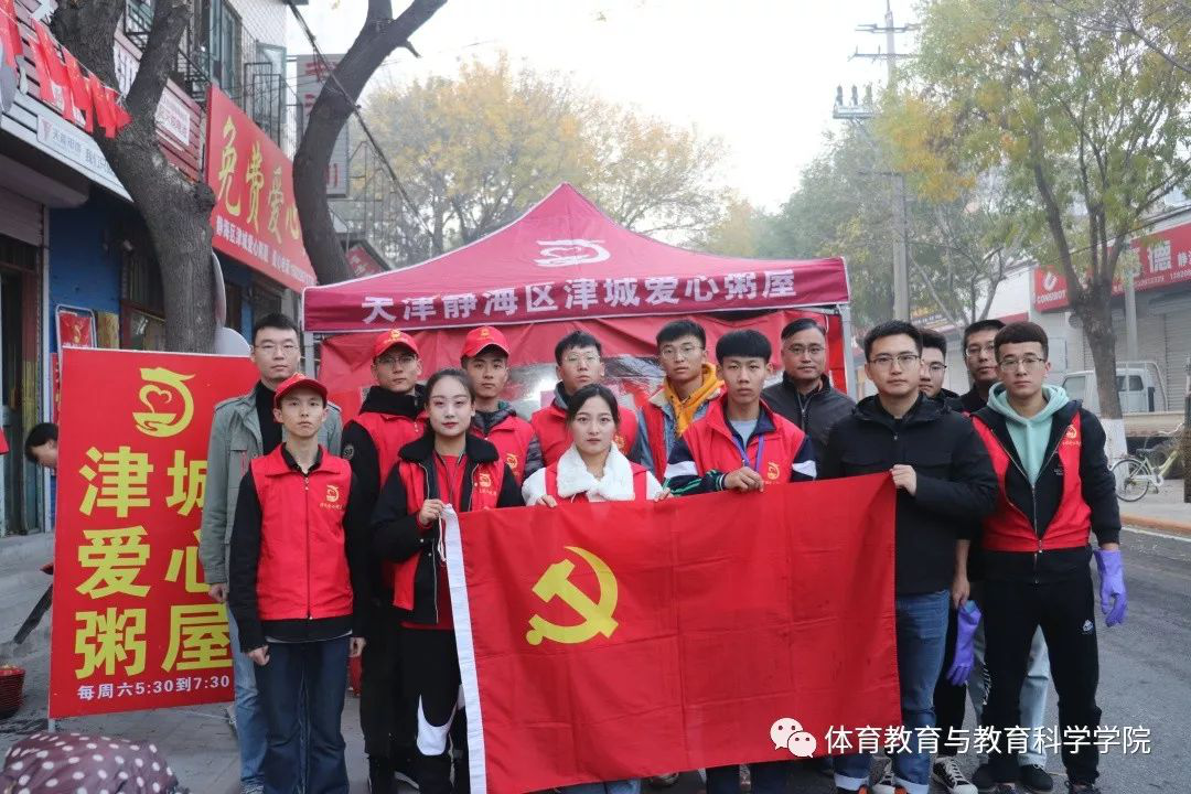 部分师生党员在党委副书记刘泽林老师的带领下,前往静海区“爱心粥屋”开展志愿服务公益活动。