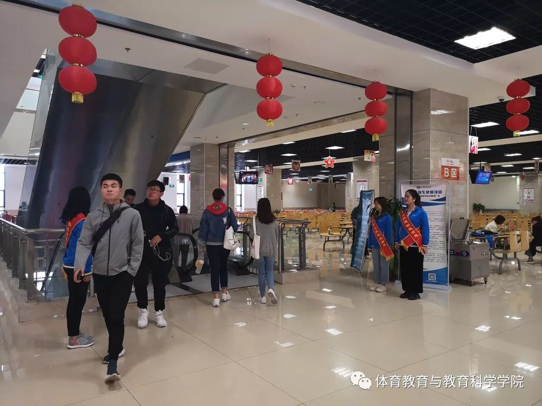每日的早中晚用餐时间,在食堂一楼的电梯口以及一楼和二楼用餐区域安排同学进行巡视和文明劝导。提醒同学们文明用餐,自觉排队,用餐完毕将餐具放回餐具回收处。