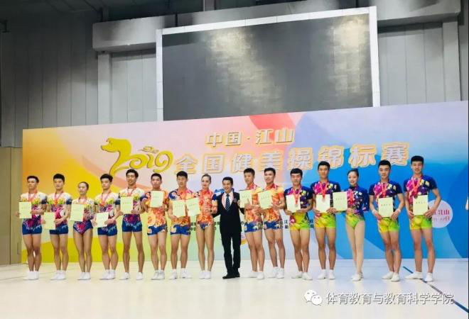 2019年7月16-21日由国家体育总局体操运动管理中心、中国健美操协会主办的“中国·江山”2019年全国健美操锦标赛在浙江省江山市举行。此次赛事共有来自全国17个省(市)97支代表队共计868人参赛,其中不乏清华大学、北京体育大学等重点大学高水平运动员参赛。我校健美操队在刘沛、助理教练王锞、唐众带领下参加了本次比赛。
