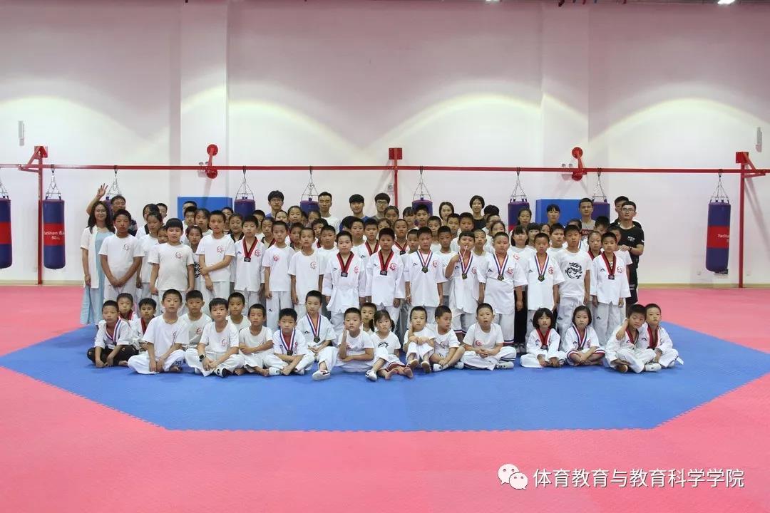 跆拳道专业,散打专业的优秀学生对小学生进行教学和指导。