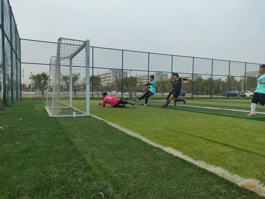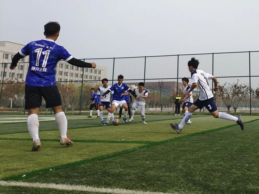院长孙延林亲临比赛现场,为运动员们加油鼓劲。淘汰赛中,“蓝魔队”对“零一队”1:3不敌对手, “X-发电站队”对“超人队”4:1战胜对手。“零一队”和“X-发电站队”双双进入决赛。在季军争夺战中,“蓝魔队”以3:0战“超人队”成功拿下季军。“零一队”和“X-发电站队”竞争激烈,难分胜负。场上,运动员精准对角长传,闪转腾挪过人,单刀快速推进,后卫倒地防守,力拔千钧射门,守门员在赛场上迅速巧妙扑救球。场下观众呐喊声、欢呼声此起彼伏,最后两队以精彩的点球大战结束比赛。“零一队”一路过关斩将,最终以2:0的比分优势获得此次男子组的冠军。