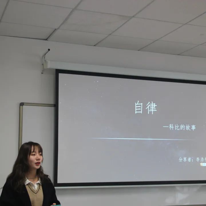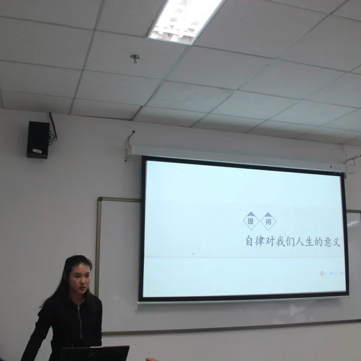 活动开始,段连帅同学给大家讲述了勒布朗·詹姆斯的故事,告诉大家天赋是上帝赋予的,而自律才是强大自己的不二法门,而且从长远来讲,不自律的人是缺乏自由的,也无法得到随之而来的独特技能和能力。李腾冲同学分享了他自己的榜样和亲身经历,并发表了他自己对于自律的理解:“自律应该是去做应该做而不想做的事,并且不去做不该做而自己想做的事。”随后,李浩然和李萱同学也从他们自己的角度分享了对于自律的见解。