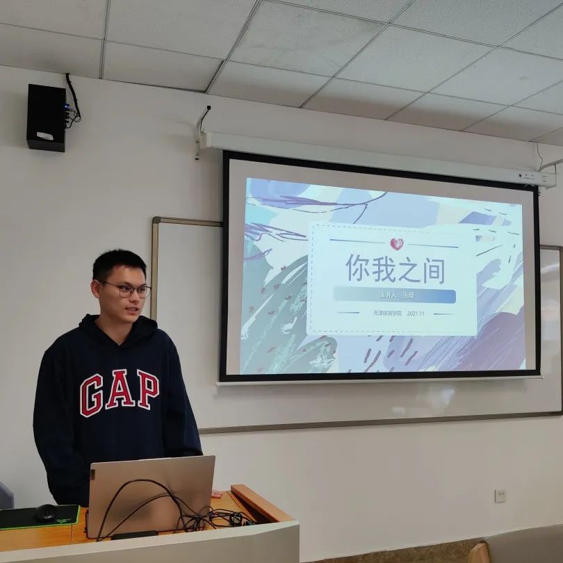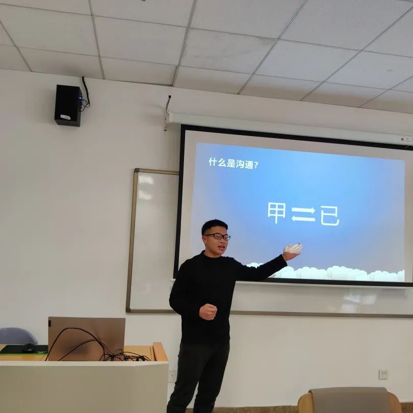 辅导员孙志文老师与同学们分享心理学方面的沟通技巧,引导同学们进行有效沟通。