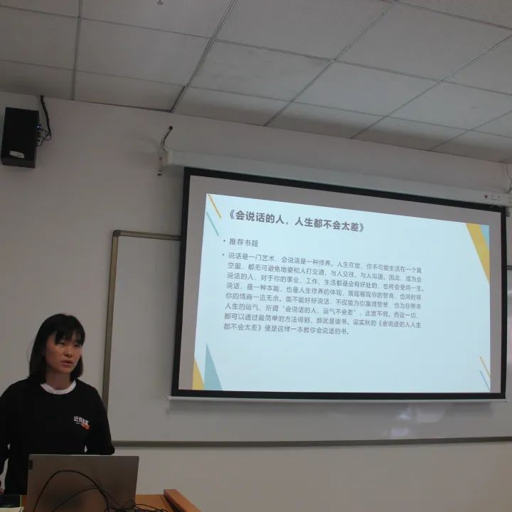 在孙老师的启发中,同学们也纷纷分享自己在书籍中感悟到的对于沟通的理解和认识。李静静同学与大家分享了《会说话的人,人生都不会太累》和《少有人走的路》,告诉大家沟通中语言使用的重要性;周森同学与大家讨论了“什么是沟通”,提醒大家沟通的同时更要学会聆听他人;高洪森同学向大家介绍了在生活和学习中,我们要学会与老师、长辈和他人进行有效地沟通,要学会换位思考,做到尊重他人;张舜同学通过分享自己在宿舍和球队的点滴小事,带大家体会了沟通的重要性;李小龙同学通过“晏子使楚”的故事给大家分享了沟通的小技巧。