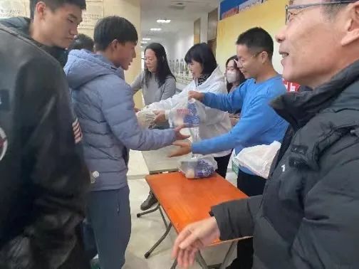 党委书记马桂霞、院长孙延林、副院长张运亮和副院长戚克敏在特教楼为同学们送上爱心餐包,体育教育与教育科学比分网