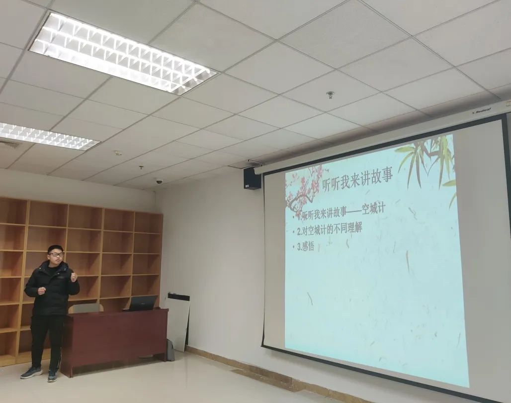 周森同学向大家讲述了《三国演义》中的空城计,分享了自己对于这一故事的理解和感悟。赵宁梅同学向大家分享了蔡元培对北大莘莘学子提出的三点期许“抱定宗旨、砥砺德行、尊敬师友”,引发了同学们很多思考。