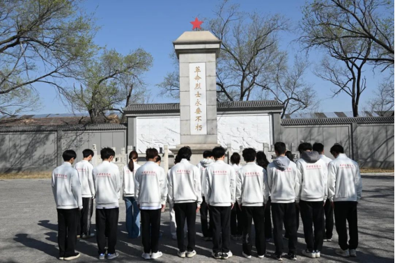 上午9时许,同学们抵达烈士陵园。在纪念馆内,大家跟随讲解员回顾了革命先烈浴血奋战的英雄事迹,透过斑驳的抗战家书、磨损的军用水壶等实物展品,深刻体悟“革命理想高于天”的精神力量。步入陵园,全体师生在烈士纪念碑前肃立默哀、鞠躬致敬。
