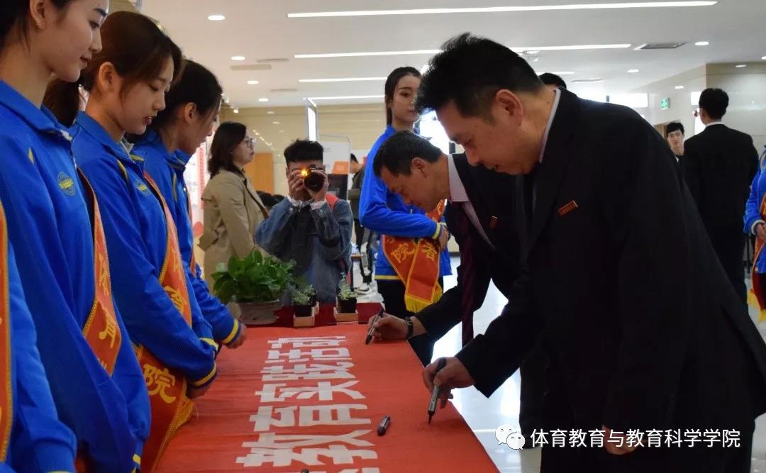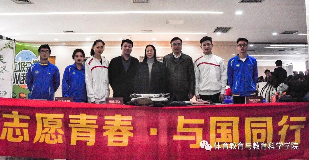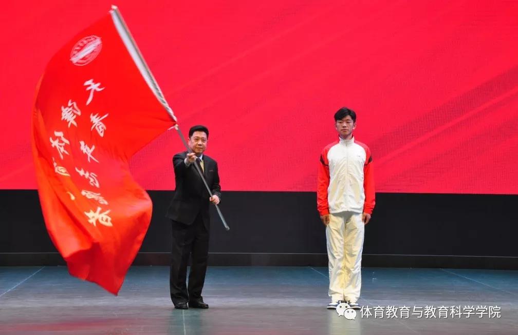 启动仪式上,党委书记王欢为我校志愿服务团队授旗。(右一为体育教育与教育科学比分网