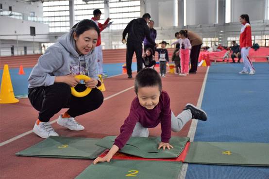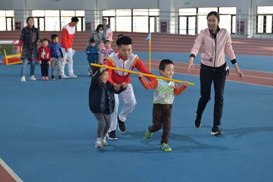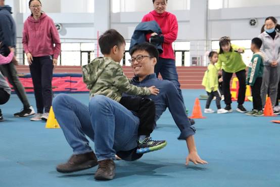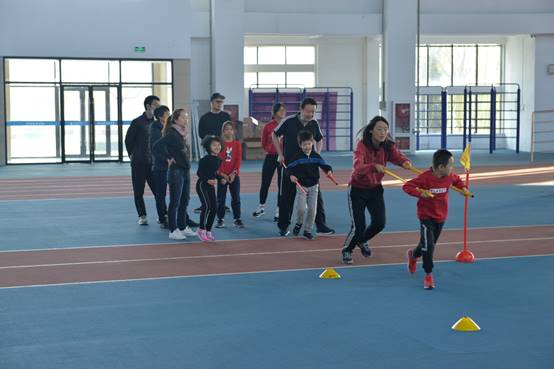 该课程在国际田联少儿田径培训(天津)推广基地负责人宋珏老师带领下,基地程国立老师、李楚冰老师、孙立冰老师、武禹彤老师、王博老师等6名老师与8名研究生共同授课讲解及实践指导少儿(趣味)田径体验课程,给我校教职工子女体验了亲子项目活动、跑跨接力项目、掷远项目、跳跃项目、团队协作项目及一级方程式等丰富多彩的(趣味)田径项目,让小朋友们在活动游戏中感受到体育运动的乐趣,同时让参加的家长们亲身体验到了亲子活动带来的幸福与温馨。
