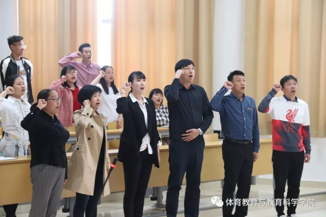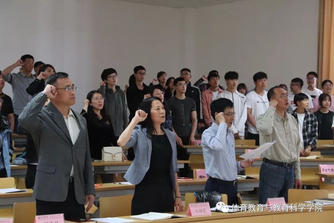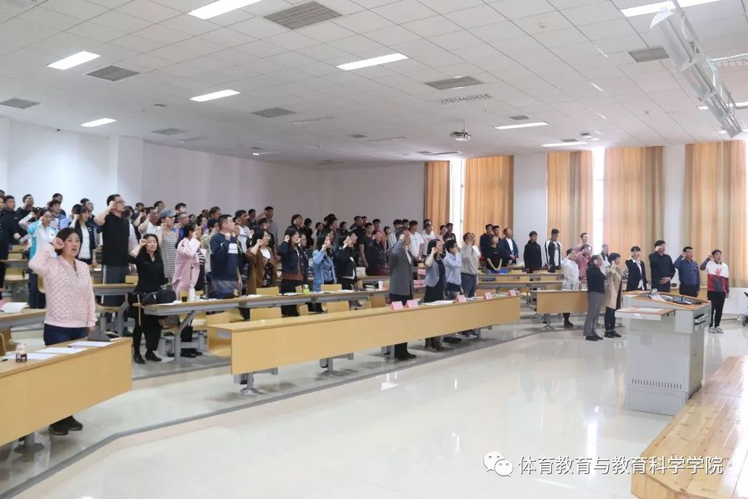 5月5日中午13时,体育教育与教育科学比分网 全体教师在教学楼A201召开师德师风建设誓师动员大会,对师德师风建设的活动进行任务布置、签署师德承诺书和宣誓。会议由院长孙延林主持,比分网 领导班子成员,办公室成员、辅导员、全体教师和部分优秀学生代表参加。