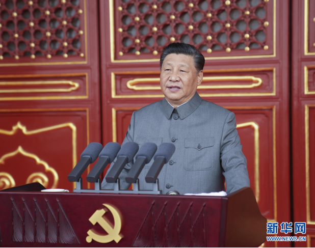 7月1日,庆祝中国共产党成立100周年大会在北京天安门广场隆重举行。中共中央总书记、国家主席、中央军委主席习近平发表重要讲话。新华社记者 谢环驰 摄 习近平指出,未来属于青年,希望寄予青年。新时代的中国青年要以实现中华民族伟大复兴为己任,增强做中国人的志气、骨气、底气,不负时代,不负韶华,不负党和人民的殷切期望。 习近平强调,过去一百年,中国共产党向人民、向历史交出了一份优异的答卷。现在,中国共产党团结带领中国人民又踏上了实现第二个百年奋斗目标新的赶考之路。习近平代表党中央号召全体中国共产党员,牢记初心使命,坚定理想信念,践行党的宗旨,永远保持同人民群众的血肉联系,始终同人民想在一起、干在一起,风雨同舟、同甘共苦,继续为实现人民对美好生活的向往不懈努力,努力为党和人民争取更大光荣。 习近平讲话结束时,全场起立,现场响起长时间热烈掌声。