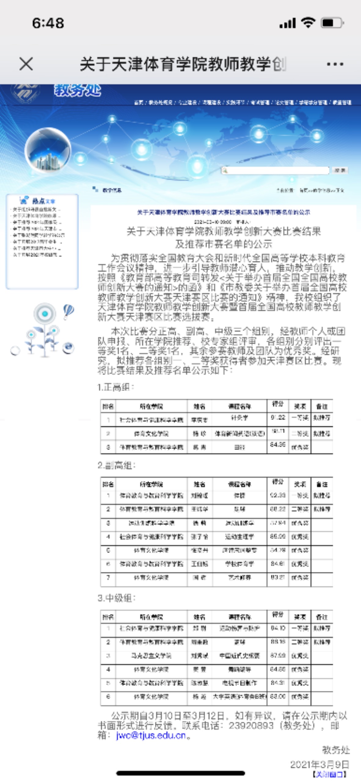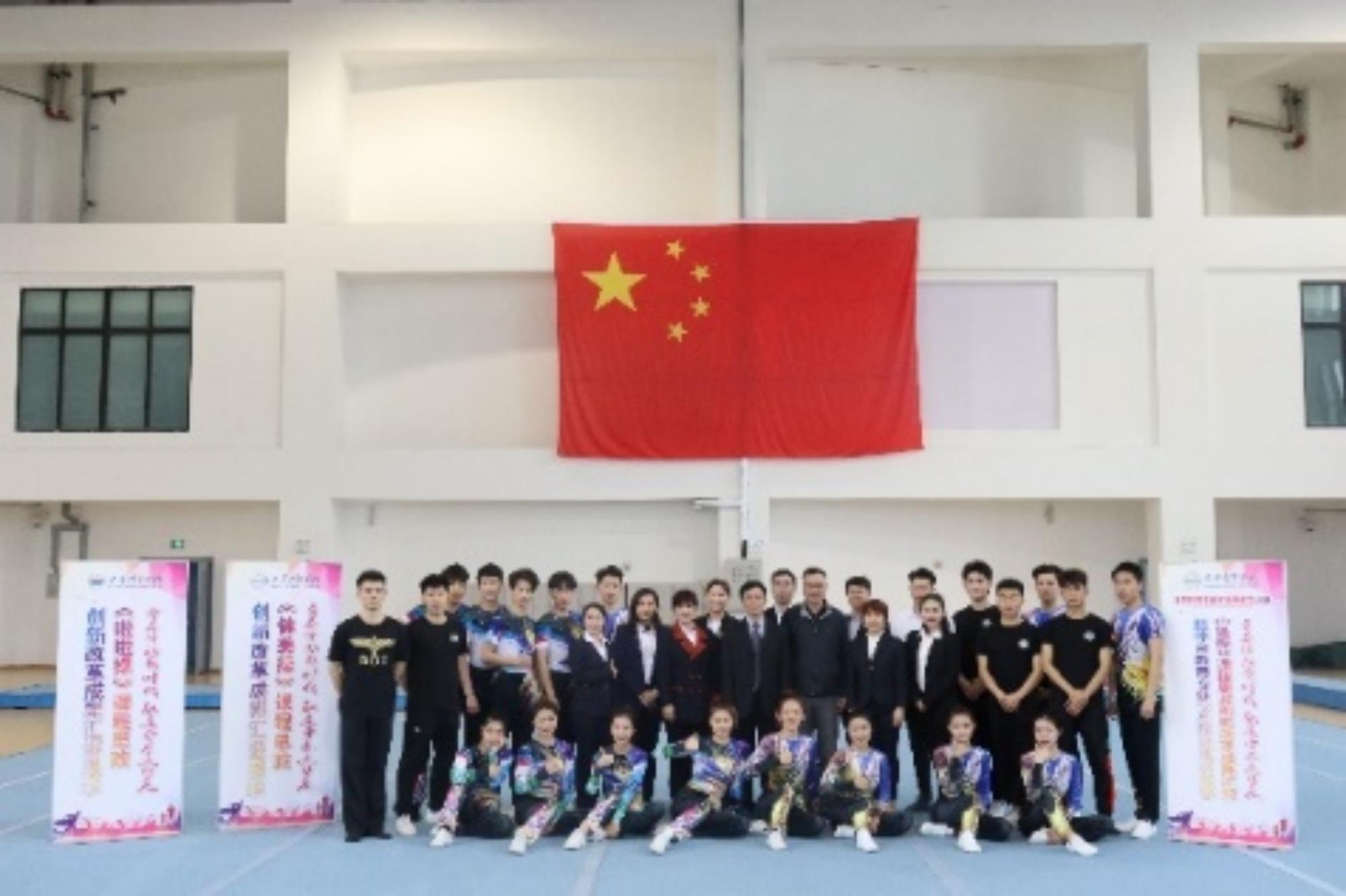 的支持下,由体操武术教研室组织举办的《体操》“课程思政”创新改革成果汇报展示暨体育教育专业学生技能提升竞赛,以“青春律动新时代,融道于术追梦人”为赛事主题,赛程分别以“榜样的力量”---青年教师展示体操技能,使学生具有学习的目标及前进的动力;“拼搏的舞台”---激发参赛学生在比赛中展现“相互理解、友谊长久、团结一致和公平竞争”的奥林匹克精神;“无上的荣耀”---在获奖学生颁奖的环节中激励学生要有勇攀高峰、挑战自我的意志品质。