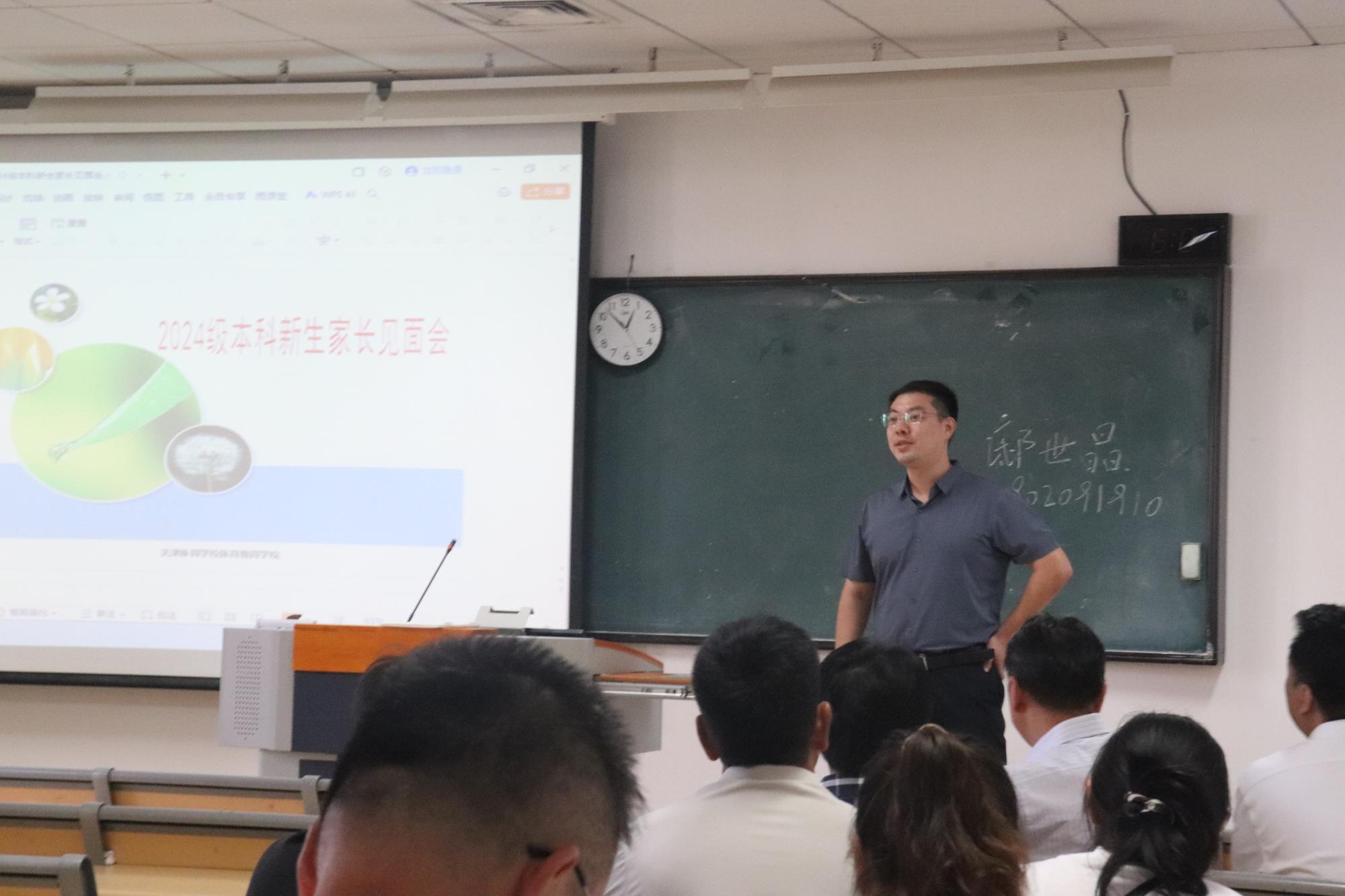召开2024级本科新生家长见面会,院长叶加宝、院党委副书记张明出席,辅导员邸世晶主持会议。